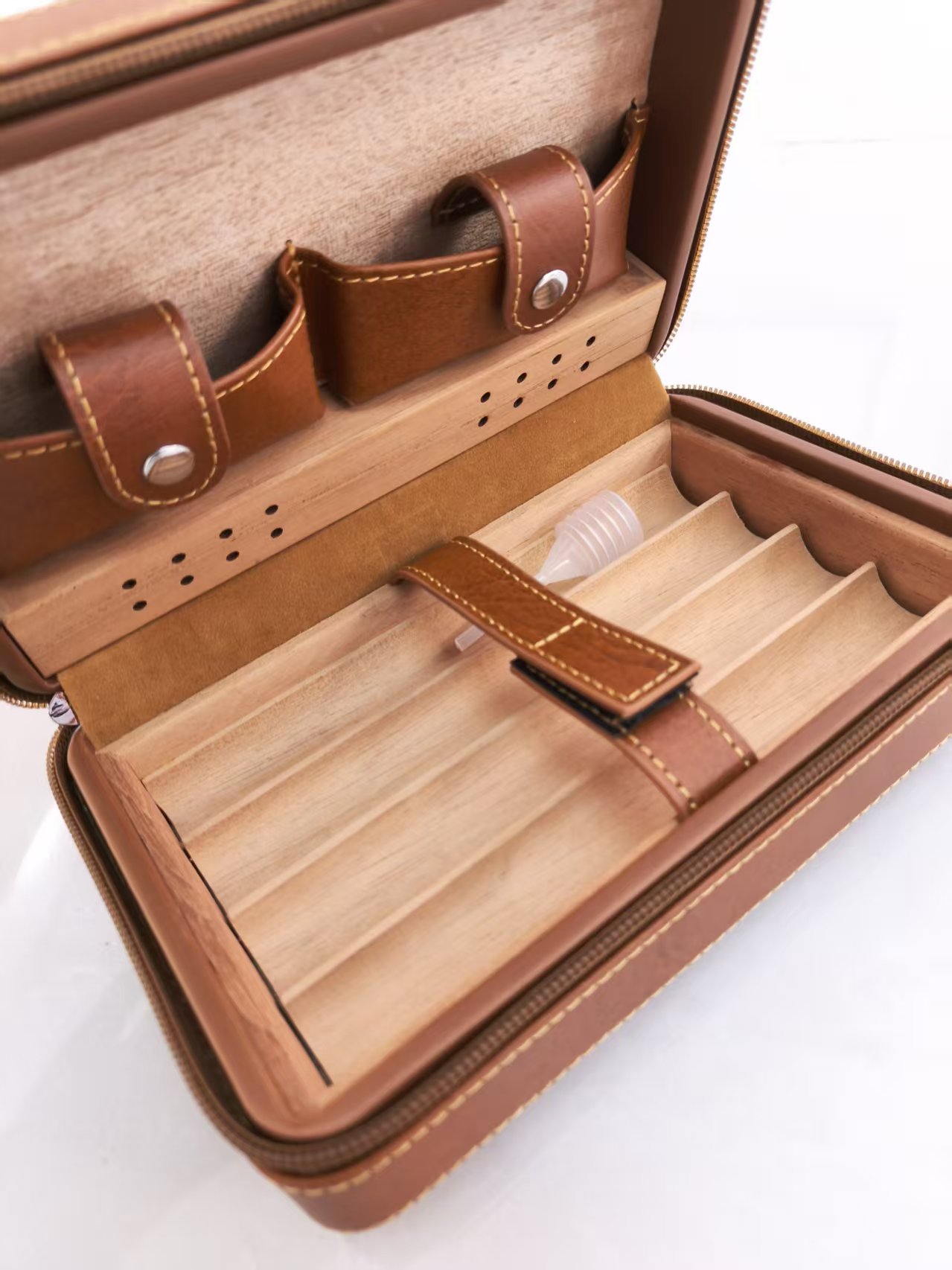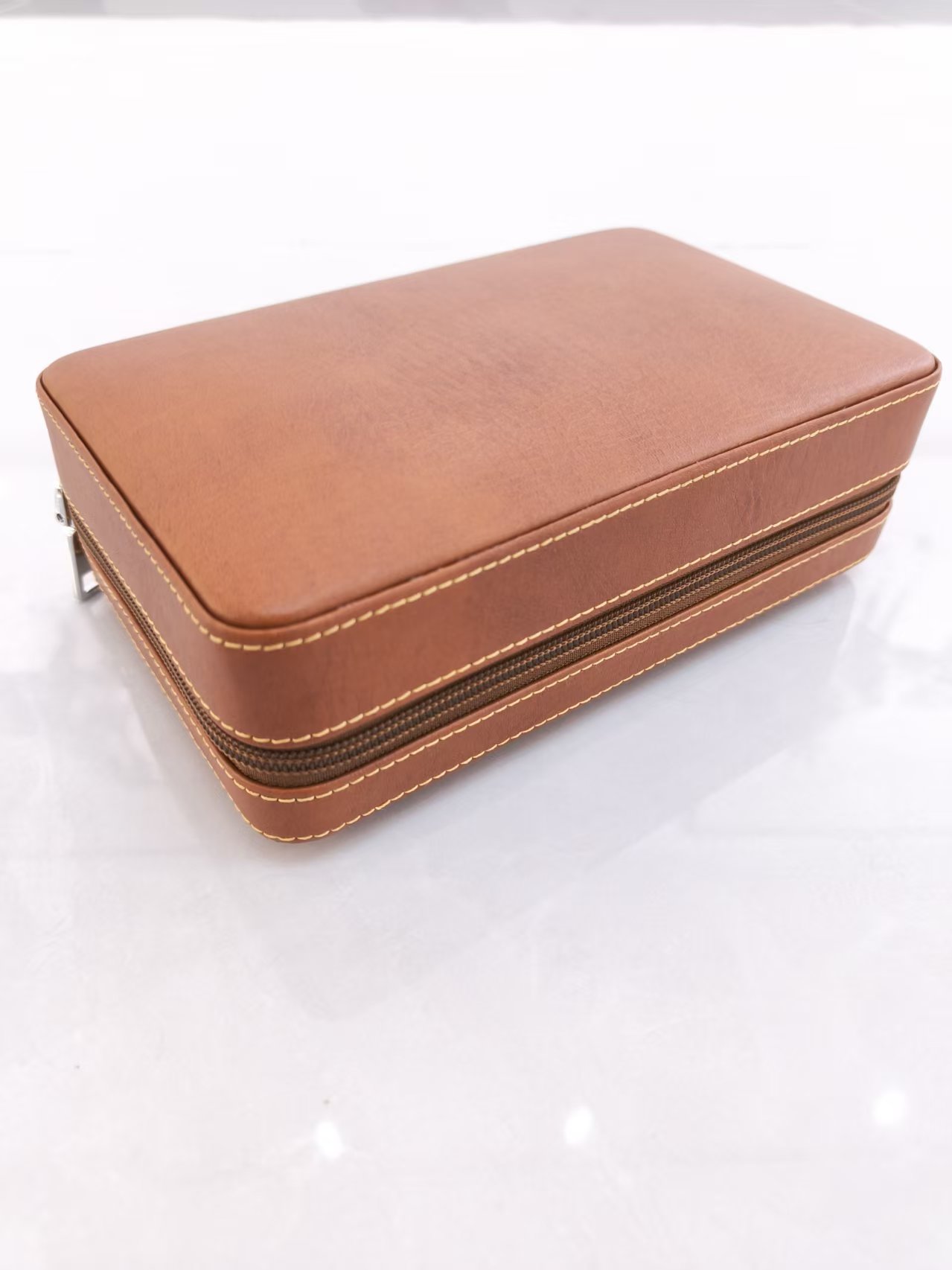 Designed for the modern cigar enthusiast who refuses to compromise on quality while traveling, this premium PU leather travel humidor combines sleek business style with professional-grade protection. Crafted from high-quality brown PU leather and lined with authentic Spanish cedar, it’s engineered to keep up to 3 cigars fresh, flavorful, and secure—whether you’re on a business trip, golf course, or weekend getaway.
